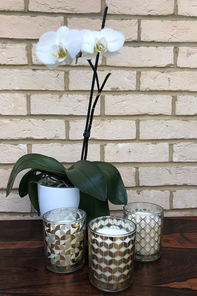 Fill the air with a luxurious Amber and Jasmine scent. This elegant Art Deco inspired designed glass filled candle with lid will add instant glamour to any interior.