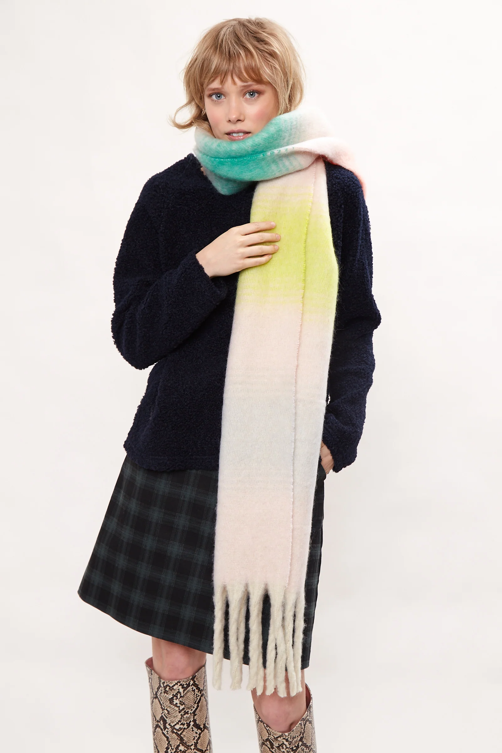 Who doesn't need a super soft multi coloured striped scarf to brighten up that winter coat ? This heavy weight winter scarf is perfect for snuggling into!