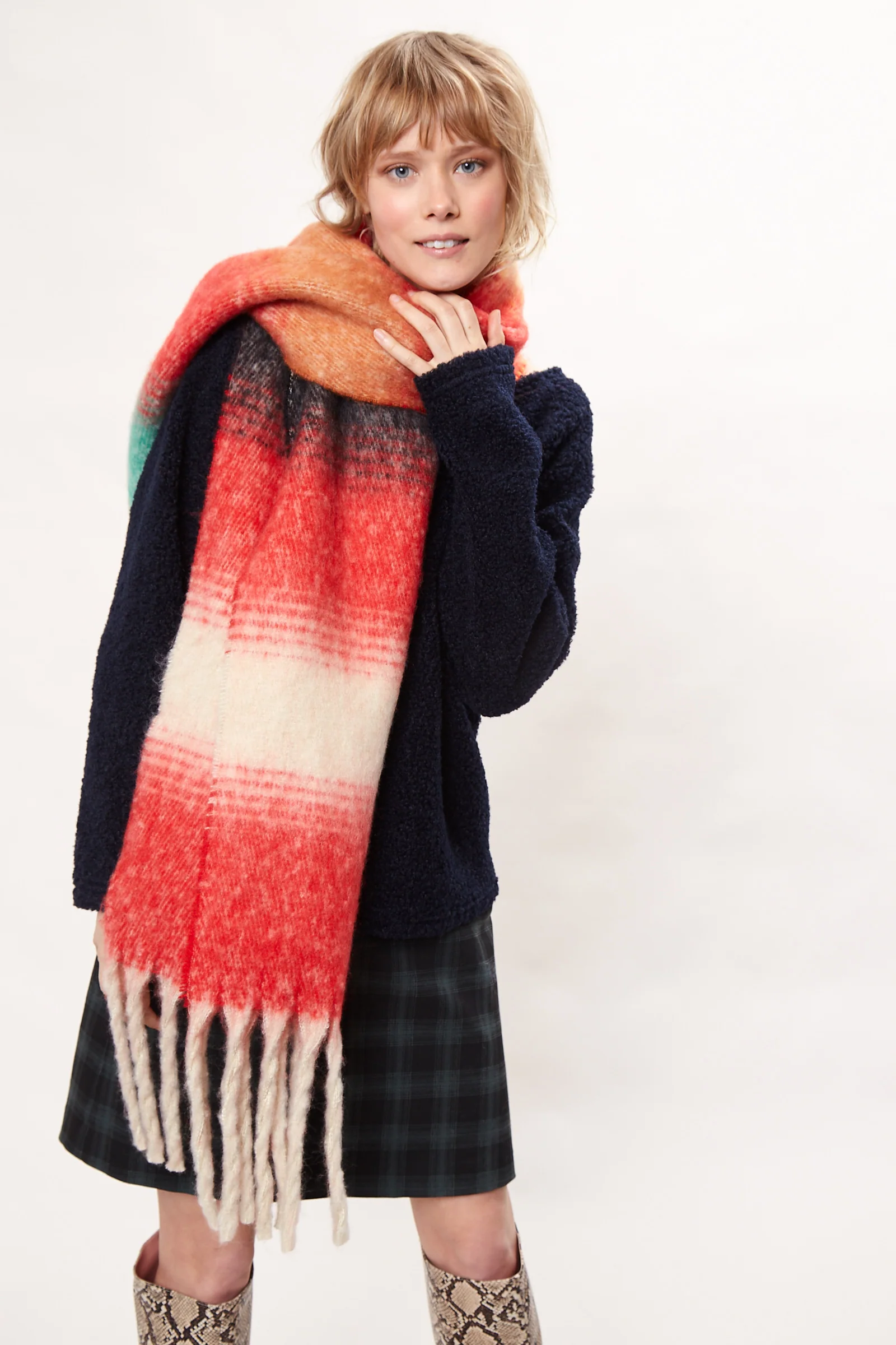 Louche Ciara Cosy Fluffy Striped Tassel Scarf - Red
