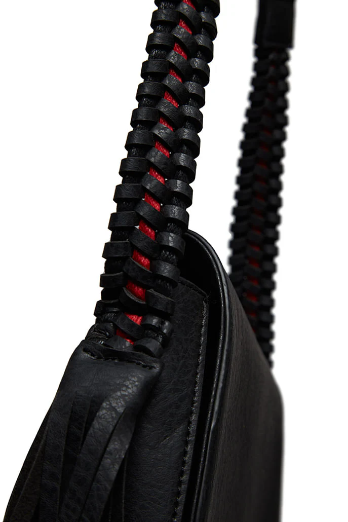 The Louche Clay is the perfect bag to throw over any outfit this summer. In a chic matte black colourway, the Louche Clay features a plated strap with red detail and tassels. A handy inside pocket is ideal for keeping your purse safe too.