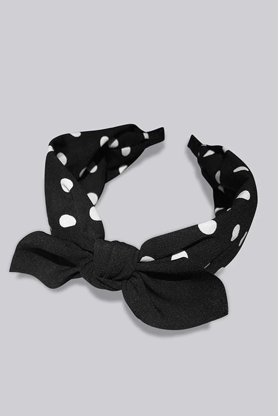 Headbands are still so on trend. Decorate your hair and add that polished finishing touch to an outfit with the Louche Ezekiel headband. Featuring a monochrome polka dot print with an adorable bow detail.