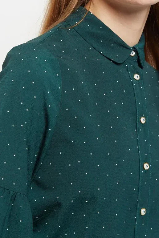 Louche Monroe Micro Dot Statement Sleeve Blouse in Green