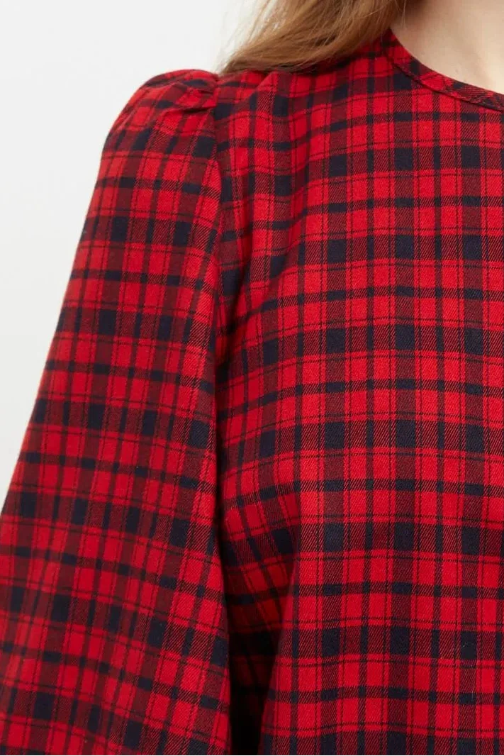 Rivka Winter Gingham Long Sleeve Blouse in Red and Black